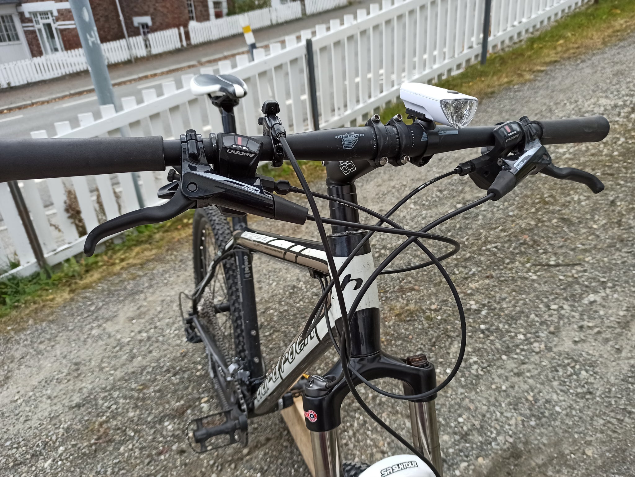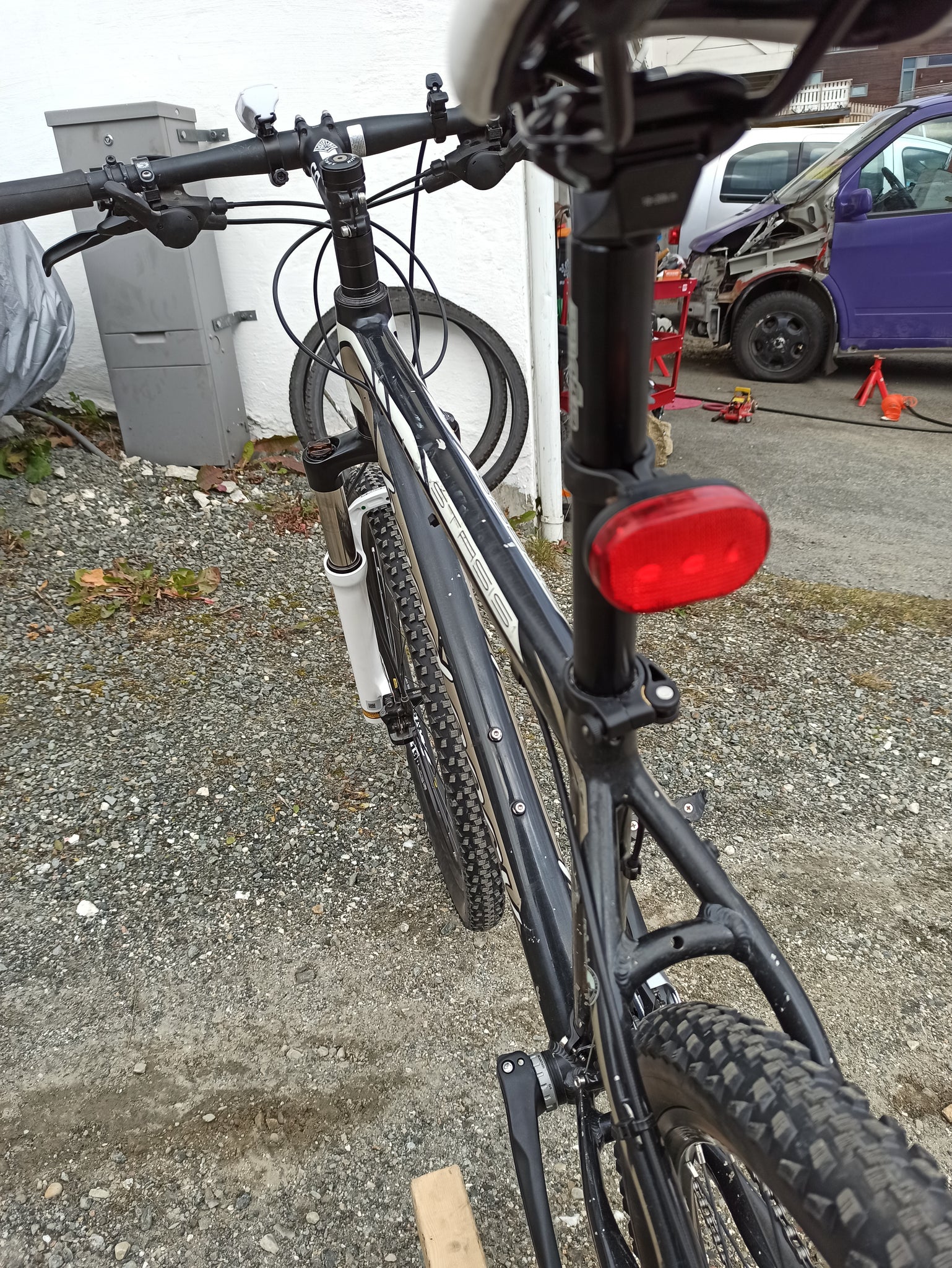 Gaffel, hjul (håndlaget) og sommerdekk, drivverk (2×9), kabler, bremseskiver og klosser, sette og settepinn. Rammen og styret er original, cirka 10 år gammel og da har en del bruksmerker, små skraper og bulker. Se bildene de er en del av salgs beskrivelse. Sykkelen stå per i dag på sommerdekk og god vinterdekk (Suomi/Nokian Hakkapeliita W106) medfølger. LED batteri lys følger også med.